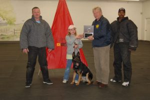Marah handled Bonnie in a Family Obedience title – She knew the routine better than even some of the adults! She received a trophy for the Junior Division, a competition medal for the Family Obedience class, and believe it or not, she handled Bonnie is the Hard Hitting competition and took first place! Way to go, Marah! She brought home more medals than the rest of us combined!